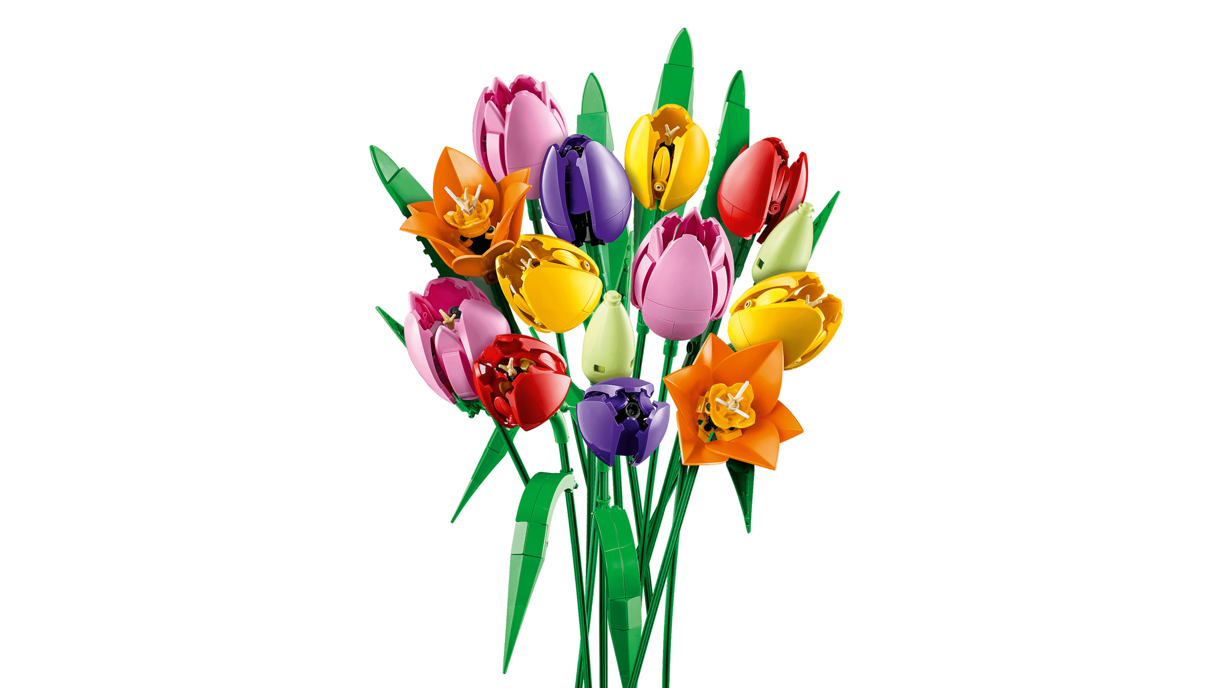 La prima novità riguarda il Bouquet di tulipani LEGO Botanicals, un set composto da ben 576 pezzi che consente di realizzare cinque varietà di tulipani in diverse fasi di crescita. I fiori spaziano dal bocciolo verde fino alle corolle violacee, passando per tulipani rossi, gialli, rosa e arancioni che si distinguono per la loro vivacità cromatica.
